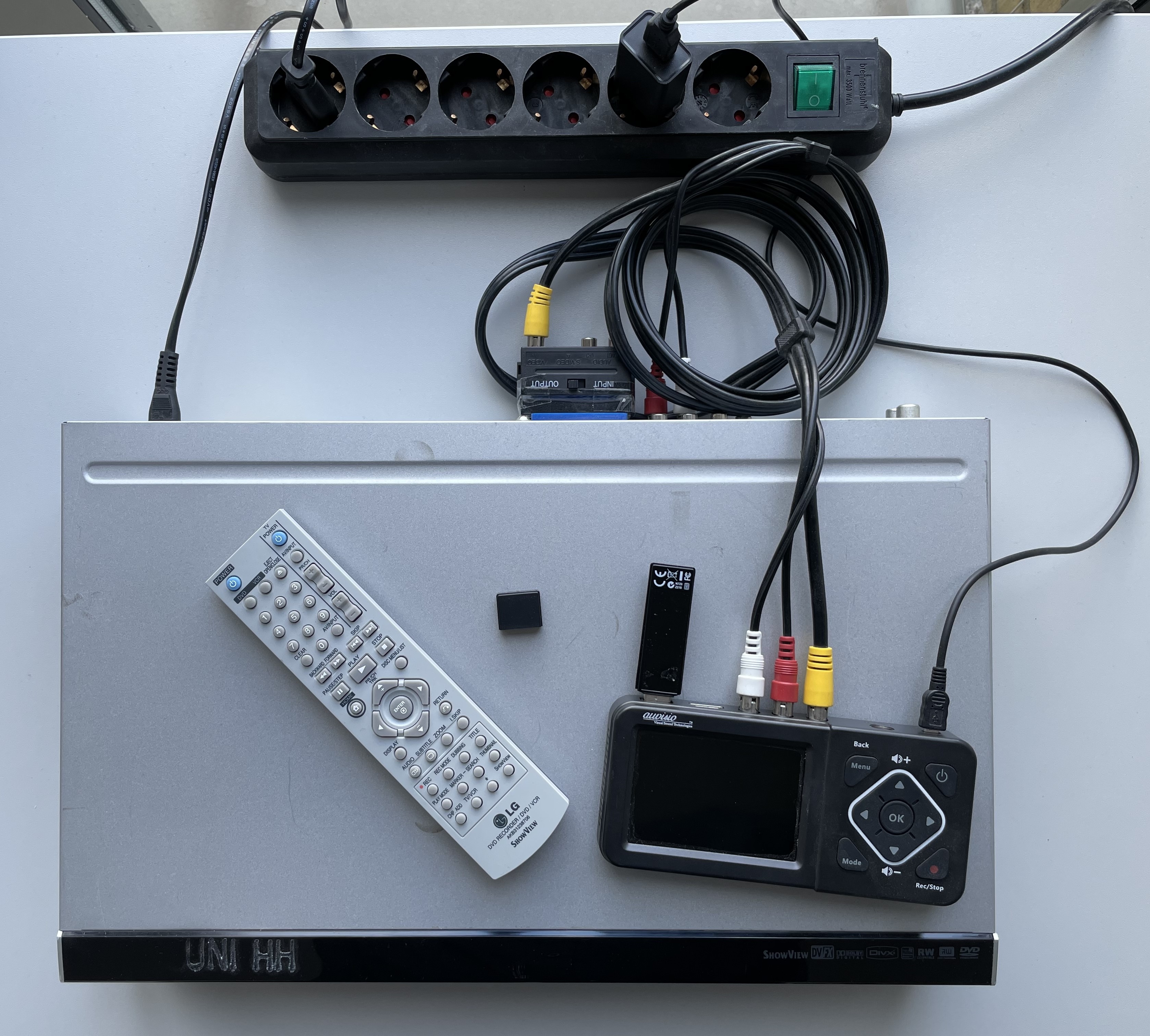 Unser Digitalisierungsset für VHS-Kassetten haben wir aus alter und neuer Technik provisorisch zusammengestellt. Da es sich in einem internen VHS-Digitalisierungsprojekt bewährt hat, folgt hier eine Aufbau- und Bedienungsanleitung.